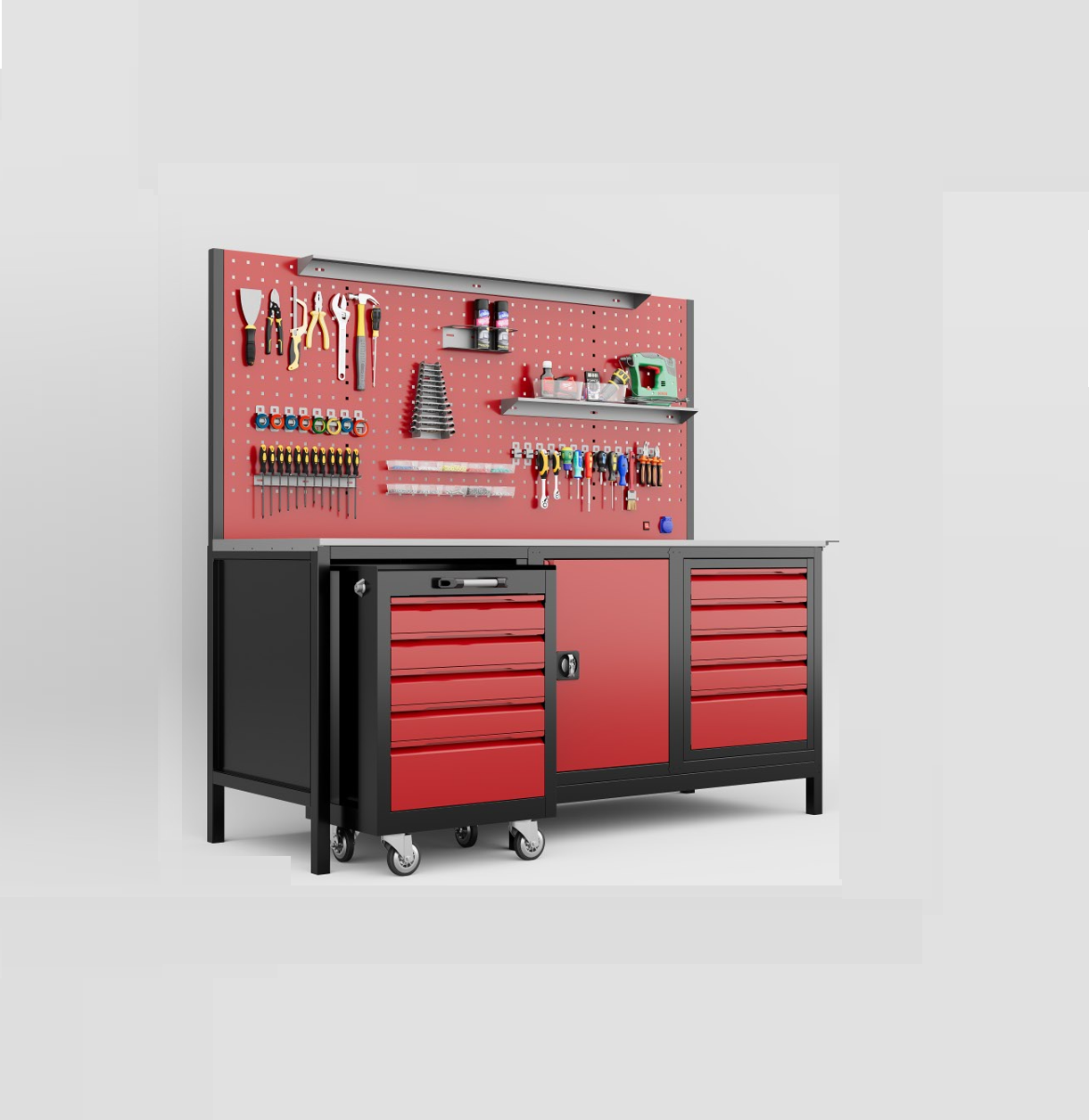 Çekmecelerde ağır sanayi tipi ve uzun ömürlü rulmanlı çelik raylar kullanılmaktadır.